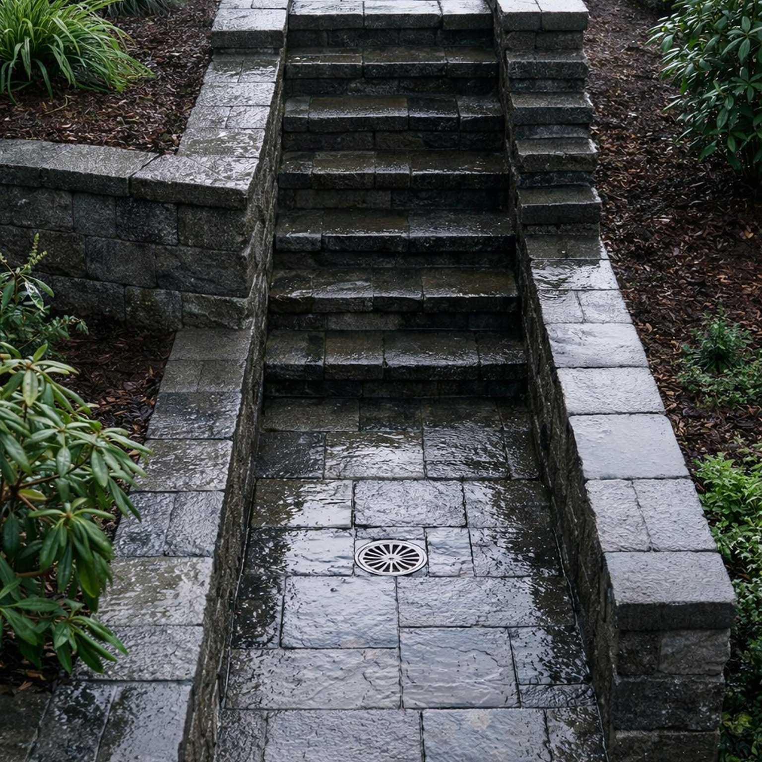 French drains, channel drains, catch basins, and grading. Systems designed for coastal rainfall — not textbook averages. We trace the water, find the source, and build a system that moves it where it needs to go.